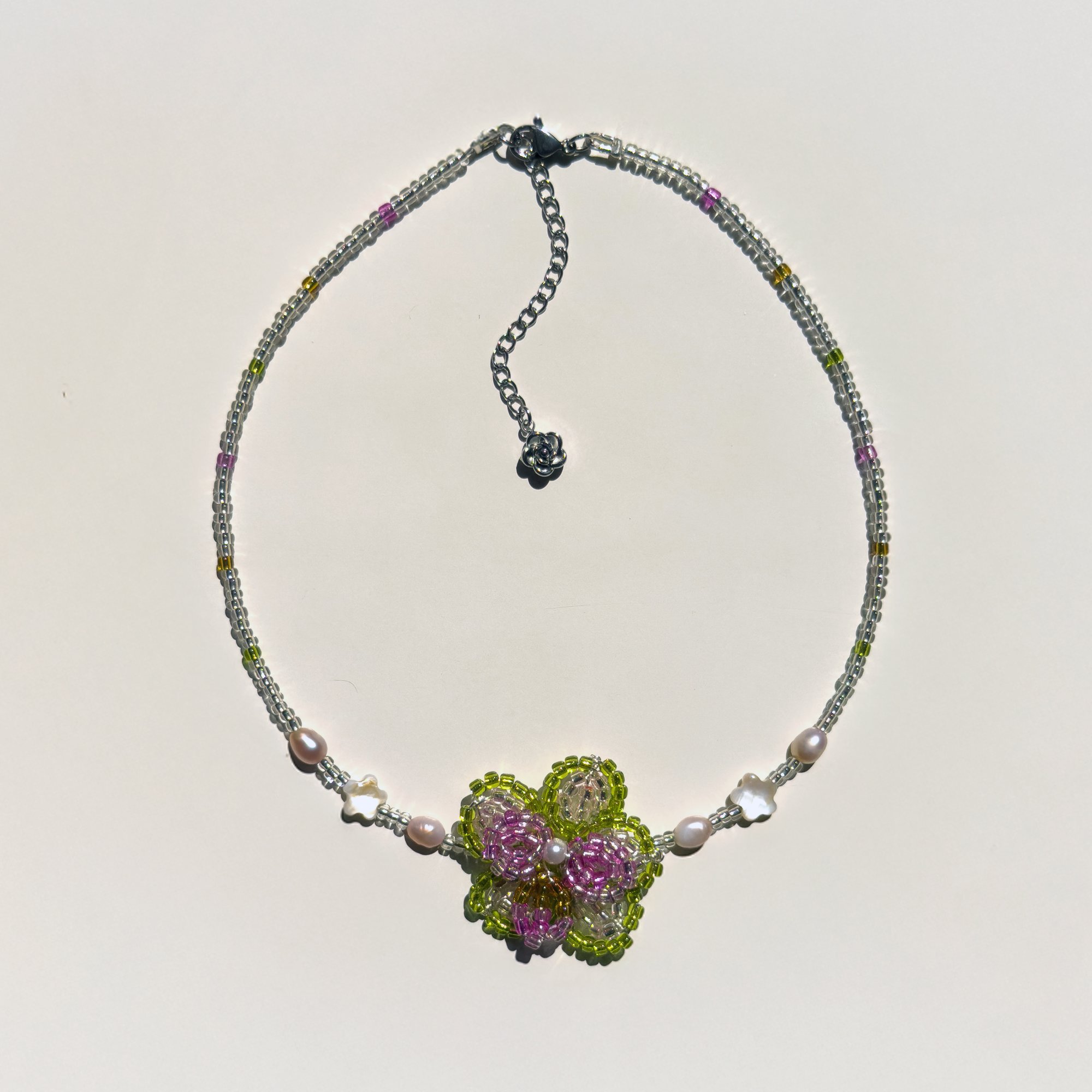 A floral daydream to wear close to your heart. Available in 2 colours – garden and blossom. Made with czech glass beads and glass pearls.